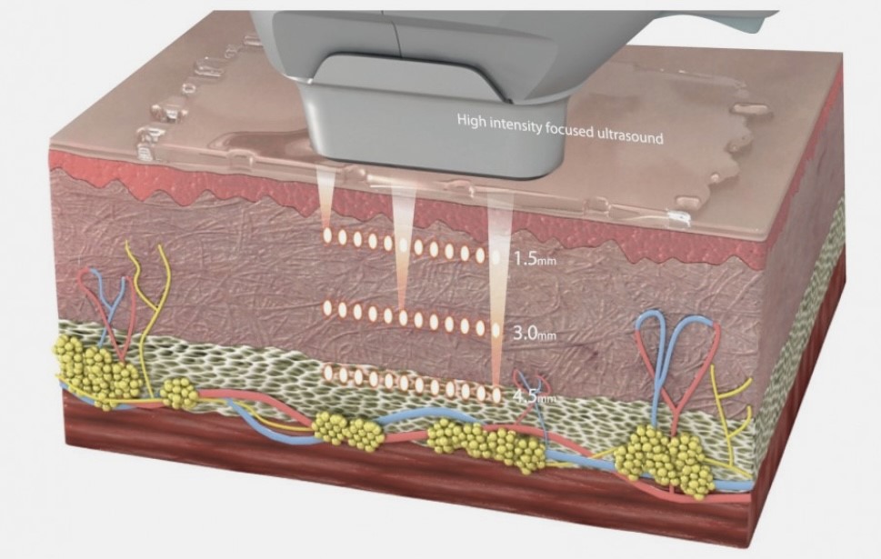 Urządzenie emituje skoncentrowane ultradźwięki o wysokiej częstotliwości. W skutek wibracji fal dźwiękowych zwiększa się aktywność komórek skóry pobudzając je do regeneracji i wytworzenia nowego kolagenu. Ponadto, podczas zabiegu tkanki kurczą się, co daje widoczny efekt liftingu. Dzięki aż 5 różnym końcówkom (1,5 mm; 3,0 mm, 4,5 mm, 6 mm i 9 mm) możemy działać na różnych głębokościach, co intensyfikuje efekt i sprawia, że przebudowa skóry jest głęboka i trwała.