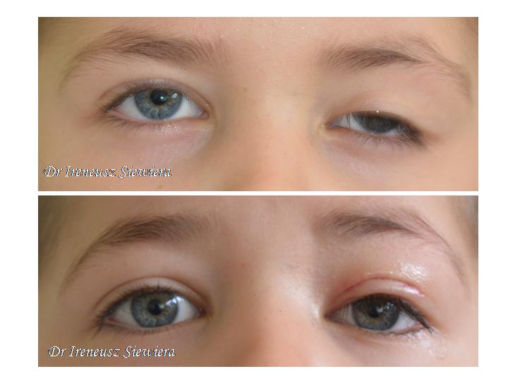W przypadku braku funkcji mięśnia dźwigacza powieki zazwyczaj wykonywany jest zabieg podwieszenia powieki do mięśnia czołowego na paskach powięzi własnej pacjenta lub na paskach materiału syntetycznego.