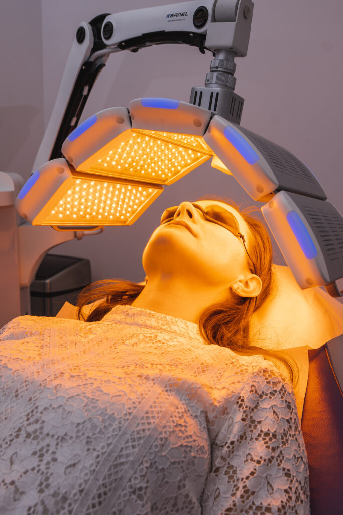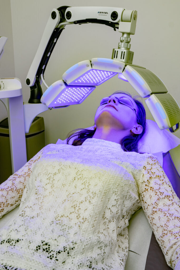 Lampa LED to urządzenie mieszające różne barwy światła (fioletowe, niebieskie, żółte, czerwone), mające bezpośredni wpływ na procesy starzenia, choroby skóry i gojenie ran pozabiegowych.